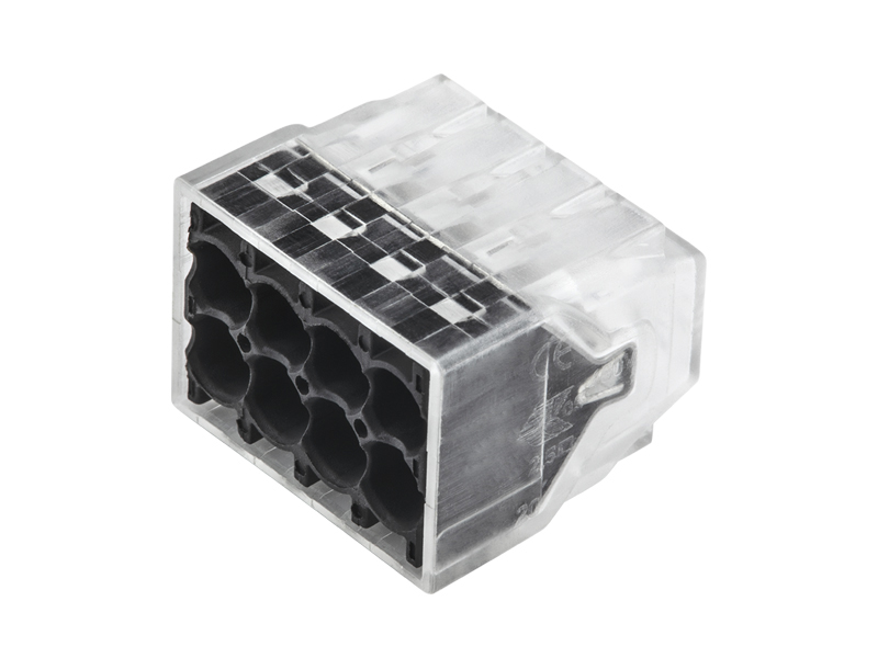 O conjunto de conectores push-in GHGM é uma excelente escolha para unir e isolar 2, 3, 4, 6 ou 8 fios. Esses conectores de fio push-in apresentam um invólucro transparente, resistente, retardador de chamas UL 94-Volt-2 e um tamanho compacto para fácil instalação.